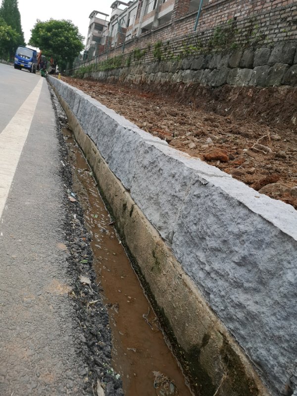 兰溪市香溪镇董宅村美丽乡村改造采用我厂生产的仿真老石板材料一一花坛石(施工现场)。